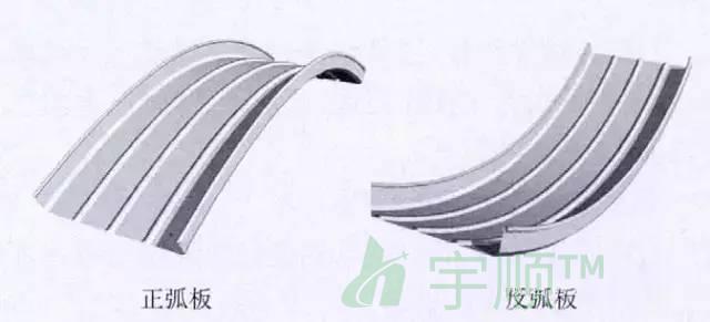 2)正、反弧板:適用于半徑小于自然成弧半徑的單曲屋面;